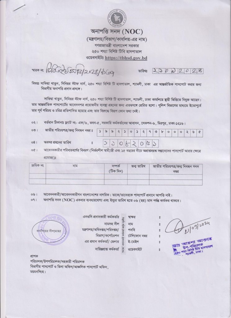 অনাপত্তি পত্র – সাফিয়া খাতুন অনাপত্তি পত্র – সাফিয়া খাতুন ডাক্তারের NOC দেখুন, ডাউনলোড করুন বা প্রিন্ট করুন Download